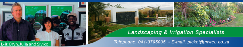The company not only offers excellent service, but now has a large propagation nursery near Nanaga where predominantly indigenous stock plants are propagated to ensure that the plants used are of top quality and have been acclimatised to the tough Eastern Cape conditions. |